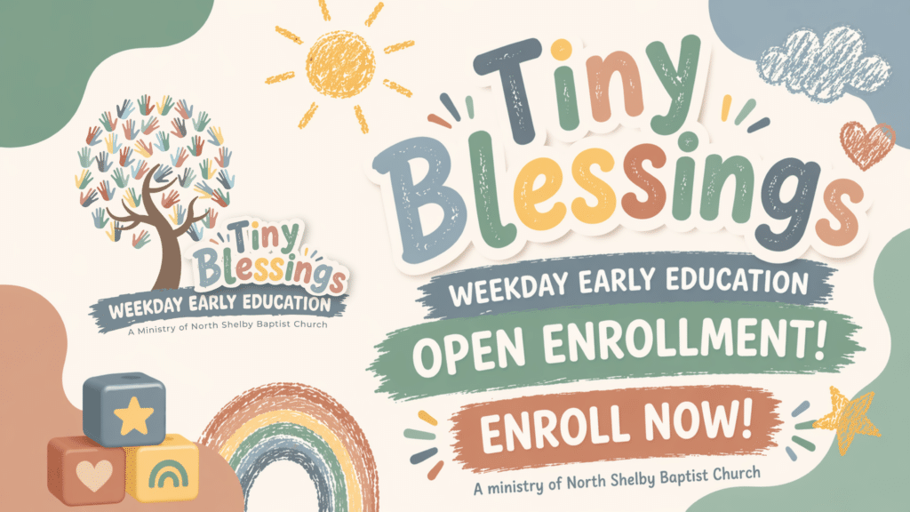 We would love the opportunity to meet your family. Tours are always welcome, and we would be honored to share our time, care, and love with your children. Thank you for your interest in the Tiny Blessings ministry of North Shelby Baptist Church.